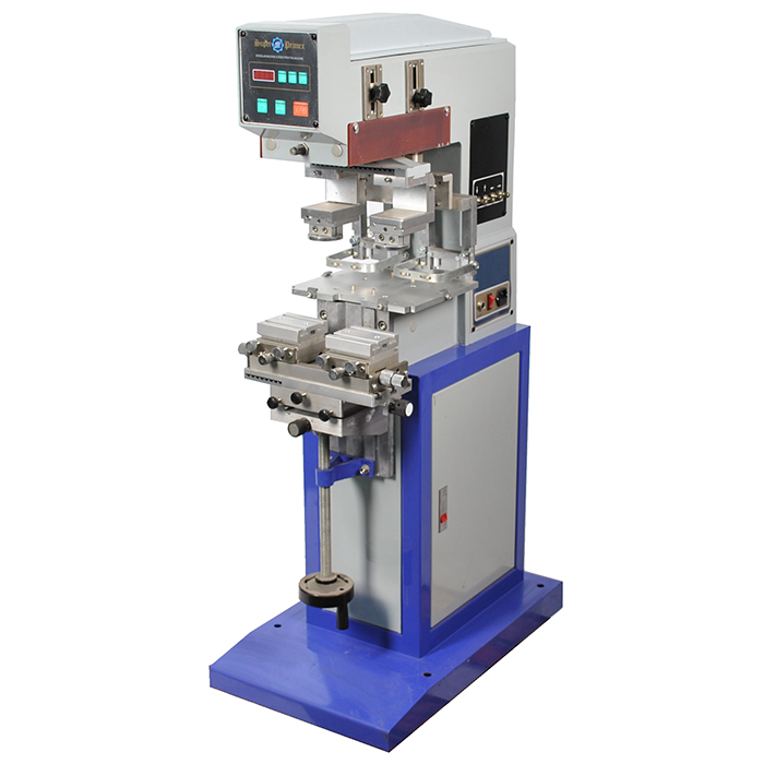 鋼板尺寸:100*100mm 外形尺寸:650*400*1200mm 工作氣壓:4-6bar 功能特點: 采用世界頂級氣動元件,性能穩定 高質量固體金屬鑄壓機身,結構堅固,機器經久耐用 每個印刷位獨立氣缸精定位套色精準 所有設備的印刷面尺寸均可定制。